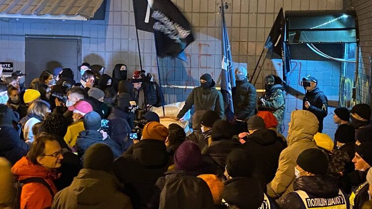 На журналиста "Страны" Влада Бовтрука, который освещал акцию под телеканалом "Наш", попытались напасть националисты.