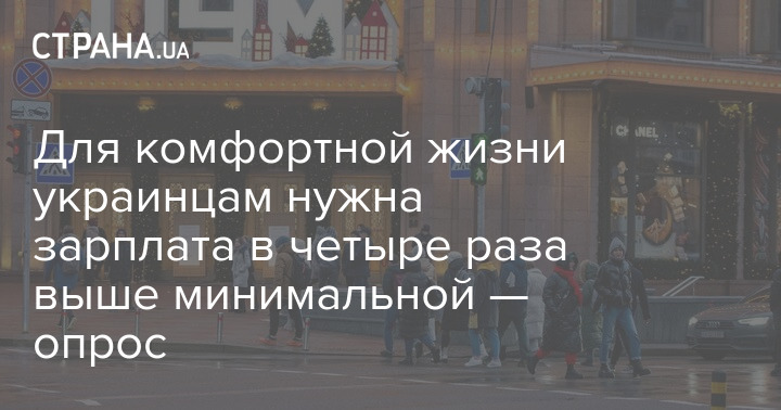 Жителям городов Украины для комфортной жизни нужна заработная плата 25 тысяч гривен в месяц. Киевлянам немного больше - 35 тысяч гривен ежемесячного дохода, при этом минимальная зарплата в нашей стране 6,5 тыс. грн.