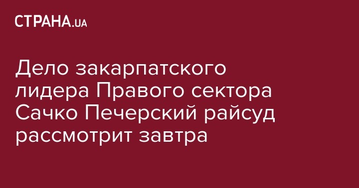 Рассмотрение уголовного дела скандально известного лидера закарпатского подразделения Правого сектора, одного из основателей батальона "Сонечко" Александра Сачко Печерский районный суд перенес на завтра, среду, 26 октября. Об этом сообщает корреспондент "Страны" из зала суда.