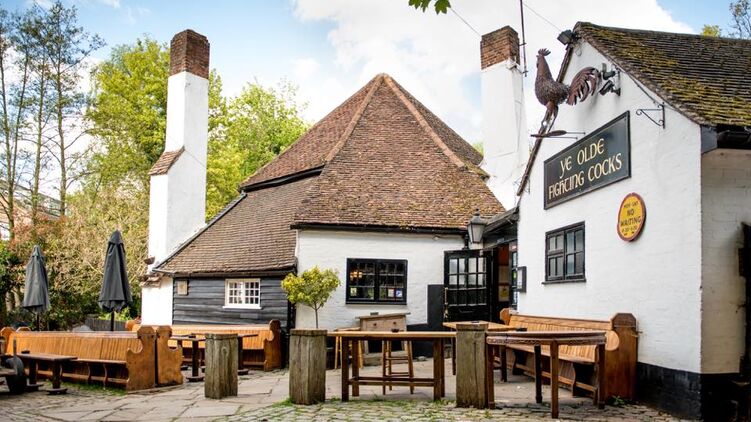 Ye Olde Fighting Cocks находится в городе Сент-Олбанс в Хартфордшир недалеко от Лондона. Согласно информации на сайте паба, заведение было основано примерно в 793 году. Однако здание, в котором оно сейчас находится, несколько моложе - оно было построено в XI веке.