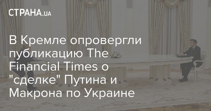 В Кремле опровергли информацию газеты The Financial Times о том, что президенты РФ и Франции - Владимир Путин и Эммануэль Макрон в ходе вчерашних переговоров заключили "сделку" по Украине.