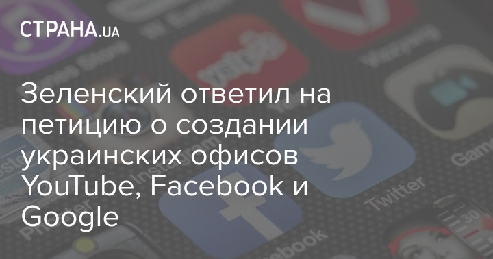 Президент Владимир Зеленский ответил на набравшую необходимые 25 тысяч голосов петицию о создании украинских офисов YouTube, Facebook и Google.