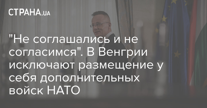 "Нет, мы на это не соглашались и не согласимся, потому что у нас уже есть войска НАТО на территории страны, то есть венгерская армия и венгерские вооруженные силы, (они - Ред.) находятся в надлежащей форме, чтобы гарантировать безопасность страны. Так что дополнительные войска на территории Венгрии нам не нужны", - сказал министр.