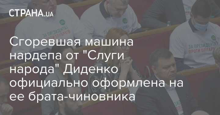Сгоревшая машина нардепа от "Слуги народа" Диденко официально оформлена на ее брата-чиновника