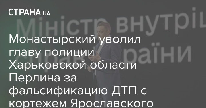 Глава МВД Украины Денис Монастырский заявил, что уволил главу полиции Харьковской области Станислава Перлина за попытку сфальсифицировать обстоятельства ДТП с кортежем Александра Ярославского.