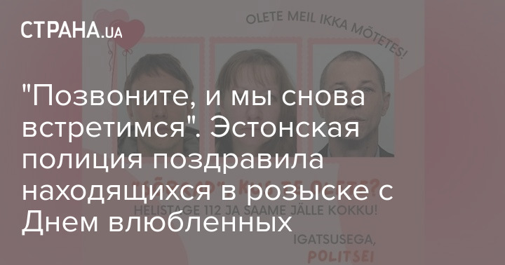 Эстонская полиция креативно "поздравила" с Днем святого Валентина людей, которые находятся в розыске, опубликовав в соцсети "валентинку" с обращением к ним.