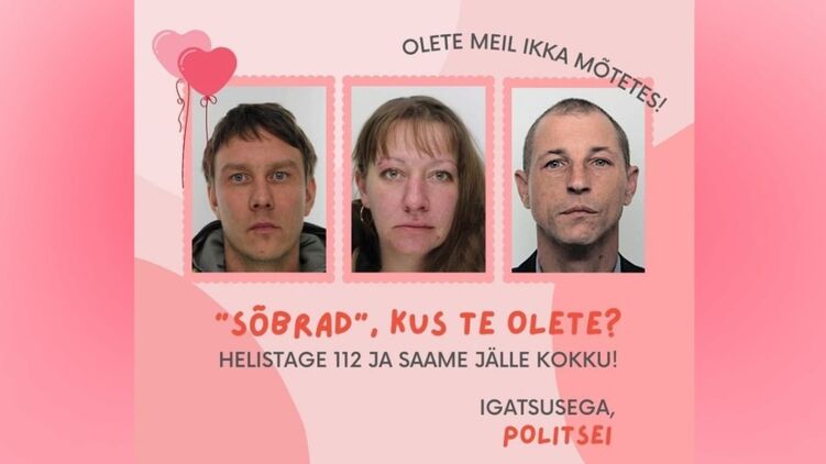 На розовой открытке с сердечками изображены лица троих реально разыскиваемых граждан Эстонии. "Вы все еще помним о вас", - говорится в тексте на открытке.