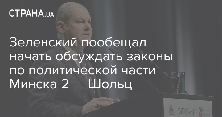 Президент Украины Владимир Зеленский пообещал начать обсуждать законы по политической части Минских соглашений, говорит канцлер Германии Олаф Шольц, который прибыл сегодня с визитом в Украину.