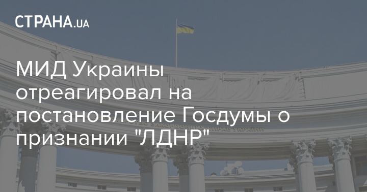 В Министерстве иностранных дел Украины отреагировали на принятие Госдумой РФ постановления о признании "ЛДНР" и, вслед за Офисом президента, заявили, что признание Россией "республик" будет означать ее сознательный выход из Минских договоренностей.