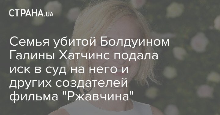 Семья оператора родом из Украины Галины Хатчинс, погибшей в 2021 году от случайного выстрела на съемках вестерна "Ржавчина", подала иск с обвинениями в непредумышленном убийстве в отношении актера и продюсера Алека Болдуина и других создателей фильма.