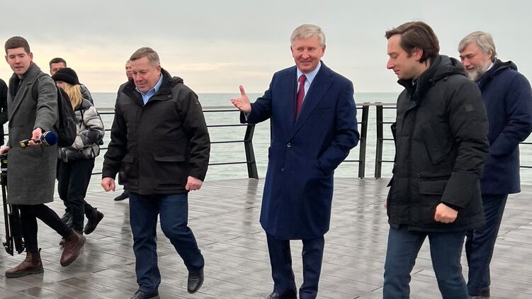 На фото видно, как Ахметов идет по набережной. Также сзади него идет внефракционный депутат Вадим Новинский, который в четверг вечером улетел в Мюнхен, а вчера вернулся.