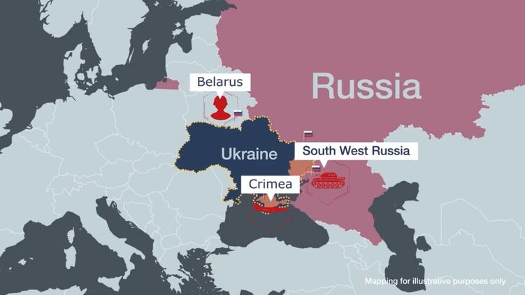 По данным британской разведки, Путин сосредоточил военные силы в Крыму, Беларуси и на восточной границе Украины - крупнейшие со времен развала СССР. Кроме того, усилилась российская военная активность на море: на Балтике, в Средиземном море и в Северной Атлантике.