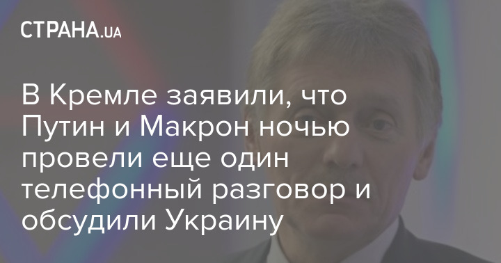 "Вчера около часа ночи по инициативе Макрона состоялся второй за день телефонный разговор лидеров России и Франции. Президенты продолжили обсуждение ситуации вокруг Украины", - сказал Песков.