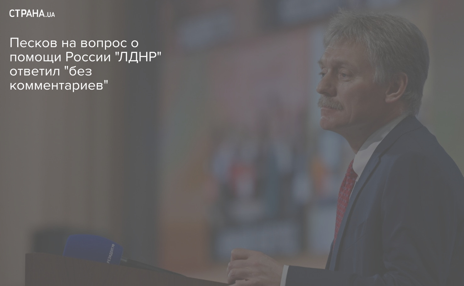 Пресс-секретарь президента Российской Федерации Дмитрий Песков заявил, что в Кремле, где ранее опровергли планы о "вторжении России", не комментируют возможность силовой помощи РФ Донбассу в случае обращения "правительства ЛНР и ДНР".
