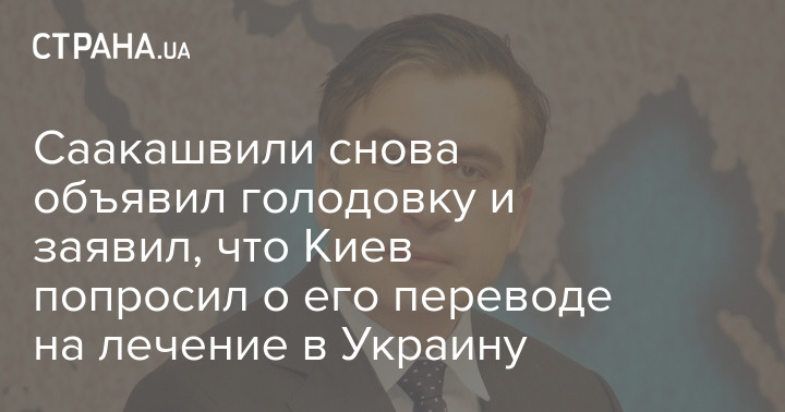 Кроме того, как сообщает Тelegram-канал "РИА Новости", Саакашвили заявил, что МИД Украины запросил его перевод в Украину на лечение.
