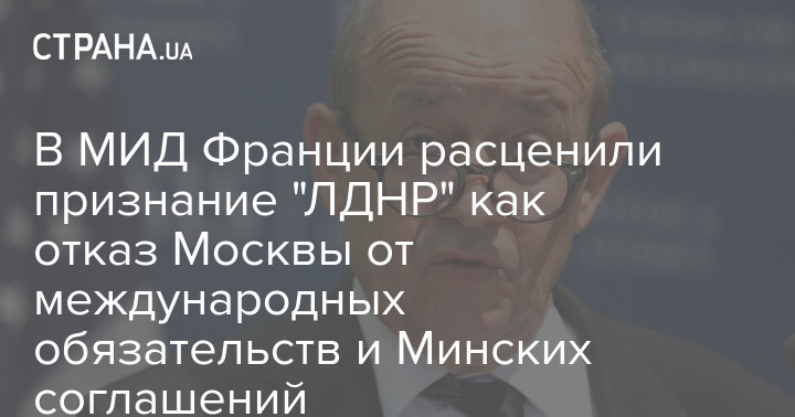 Министр иностранных дел Франции Жан-Ив Ле Дриан считает, что признание Россией независимости "ЛНР" и "ДНР" нарушают международное право и означает, что Москва  "отказывается от своих международных обязательств и Минских соглашений".