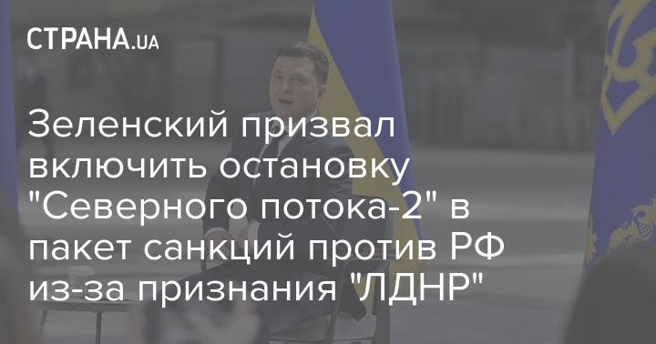 Зеленский призвал включить остановку "Северного потока-2" в пакет санкций против РФ из-за признания "ЛДНР"