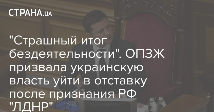 "Страшный итог бездеятельности". ОПЗЖ призвала украинскую власть уйти в отставку после признания РФ "ЛДНР"
