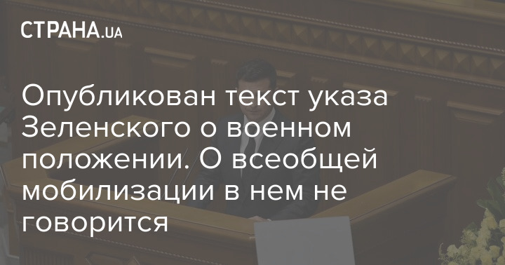 Опубликован текст указа Зеленского о военном положении. О всеобщей мобилизации в нем не говорится
