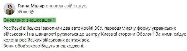После этого заместитель министра обороны Анна Маляр заявила о ликвидации российских диверсантов.