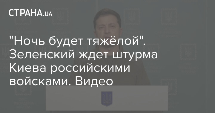 "Ночь будет тяжёлой". Зеленский ждет штурма Киева российскими войсками. Видео