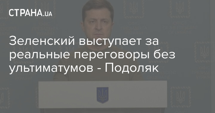 Советник президента Украины Михаил Подоляк говорит, что позиция президента Украины Владимира Зеленского остается прежней - только реальные переговоры и никаких ультиматумов.