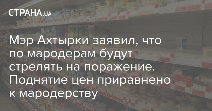 В городе Ахтырка, что в Сумской области, за мародерство будут расстреливать на месте а поднятие цен на товары будет рассматриваться как мародерство.