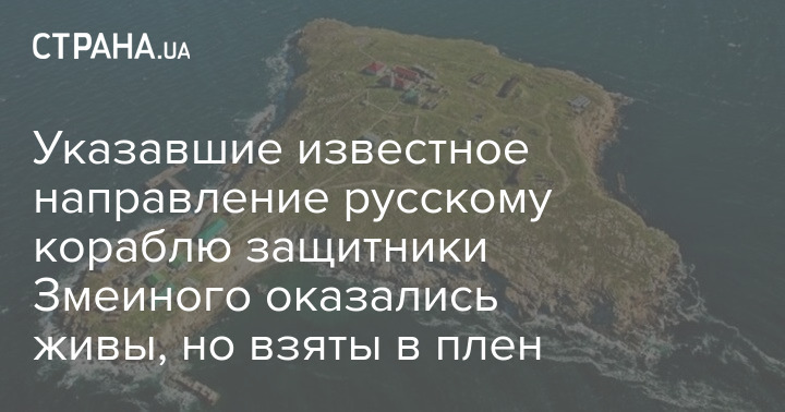 Морские пехотинцы и пограничники с острова Змеиный, которые ответили русскому кораблю уже ставшей легендарной фразой, живы и находятся в плену. Об этом сообщает ВМС ВСУ.