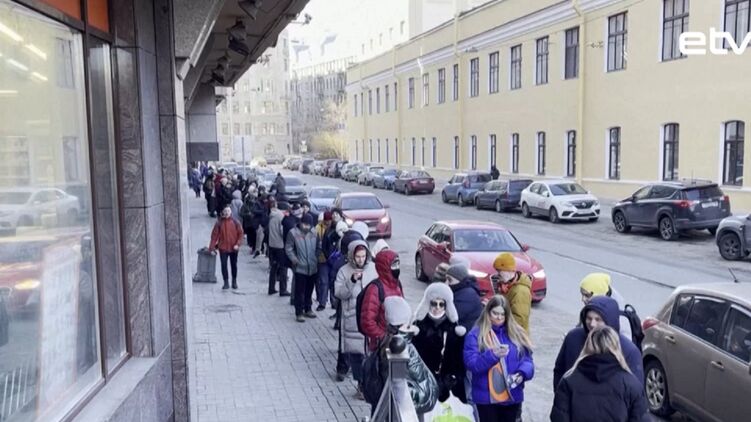 В России выстраиваются очереди к банкоматам, снимают и рубли, и валюту. Фото: err