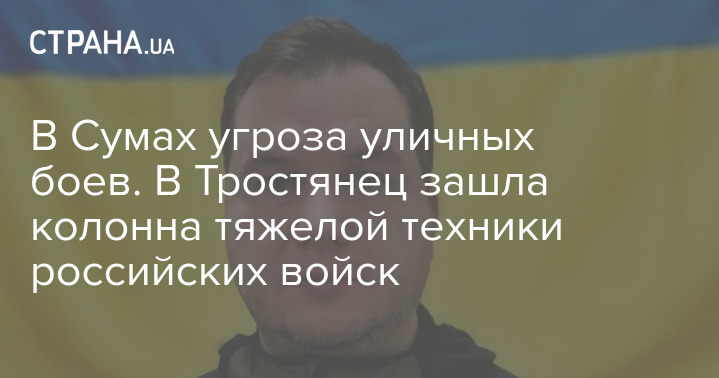 Глава Сумской ОГА Дмитрий Живицкий на своей странице в Фейсбук заявил, что в Сумах есть угроза уличных боев. Также, по его словам, в Тростянец зашла колонна тяжелой техники российских войск.