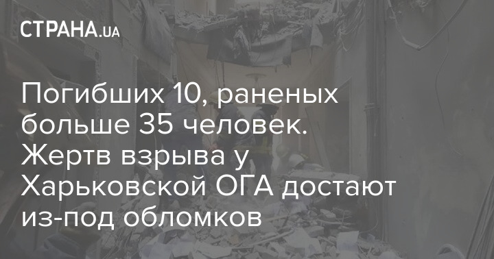 По информации Антона Геращенко, 1/3 здания ХОГА обрушилась. И погибших уже 10. Раненых более 35.