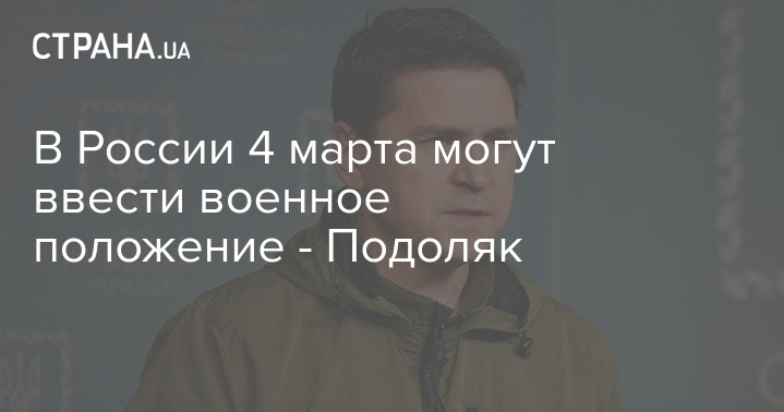 Советник главы Офиса президента Украины Михаил Подоляк заявил о том, что в России в пятницу, 4 марта, могут ввести военное положение.
