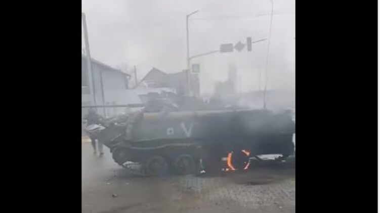 "Идет бой за контроль над городом Гостомель. В районе местного стеклозавода на 18.30 уже уничтожено 10 боевых машин десанта врага.