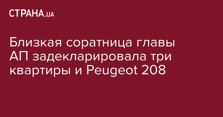 Близкая соратница главы АП задекларировала три квартиры и Peugeot 208