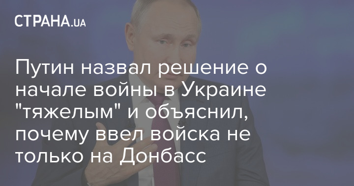 Путин назвал решение о начале войны в Украине "тяжелым" и объяснил, почему ввел войска не только на Донбасс