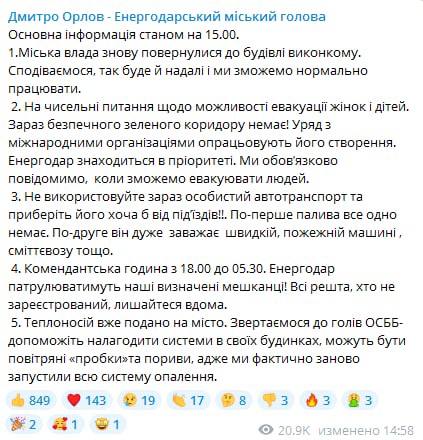 Ранее российские войска захватили город Энергодар Запорожской области, случился обстрел атомной станции. В нашем материале и блоге Олеси Медведевой "Ясно. Понятно" — что произошло на АЭС и была ли угроза "второго Чернобыля".