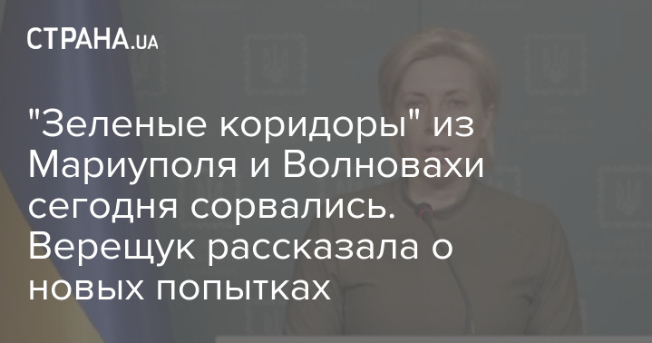 Между тем вице-премьер-министр по вопросам реинтеграции временно оккупированных территорий Ирина Верещук в комментарии "Стране" сообщила, когда планируется следующая попытка организовать зелёные коридоры для эвакуации людей из городов, где идёт война.