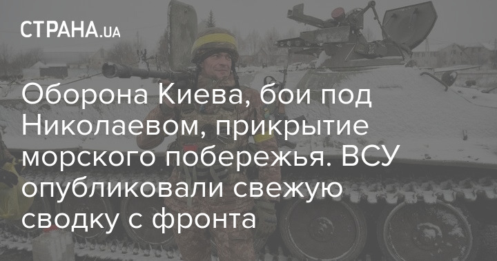Оборона Киева, бои под Николаевом, прикрытие морского побережья. ВСУ опубликовали свежую сводку с фронта
