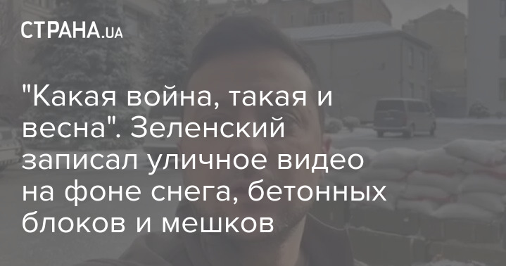 "Какая война, такая и весна". Зеленский записал уличное видео на фоне снега, бетонных блоков и мешков