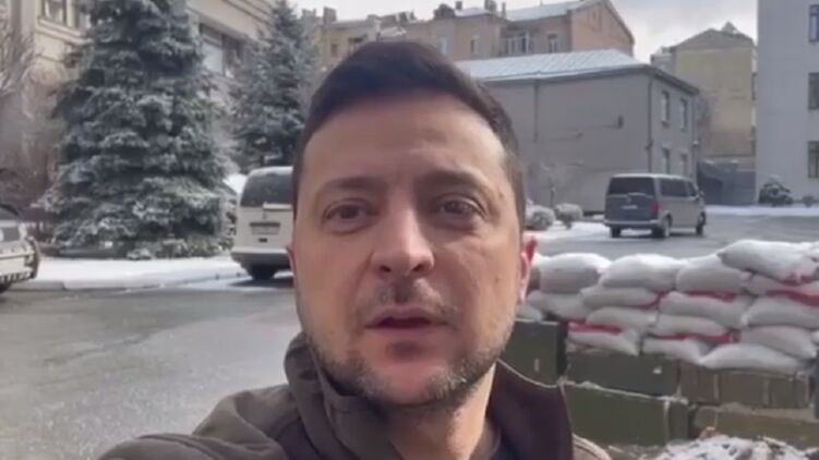 Президент Украины Владимир Зеленский записал видеообращение на фоне снега, бетонных блоков и мешков, во вторник, 8 марта.