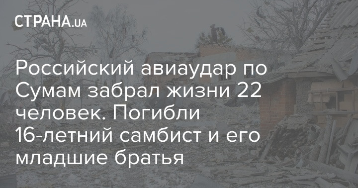 В Сумах в результате российского авианалета в ночь с 7 на 8 марта погибли 22 мирных жителя, среди которых 3 детей. Удар забрал жизнь 16-летнего чемпиона Украины по самбо Артема Прийменко.
