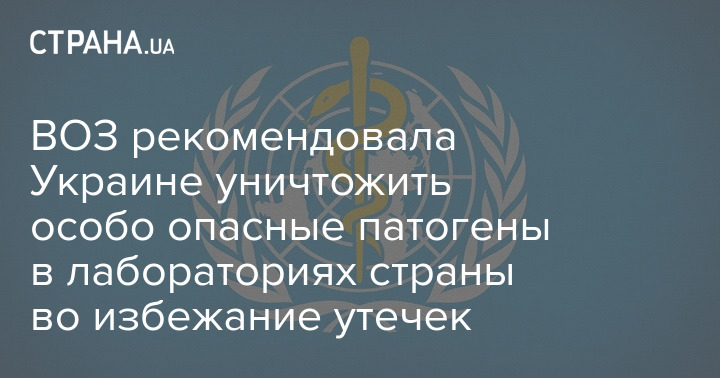 Всемирная организация здравоохранения посоветовала Украине уничтожить особо опасные патогены, размещенные в лабораториях общественного здравоохранения страны, чтобы предотвратить "любые потенциальные утечки", которые могут привести к распространению болезней среди населения.