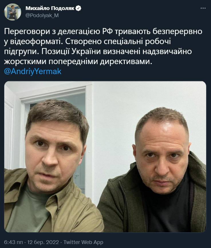 Член делегации от Киева Михаил Подоляк подтвердил переговоры и сообщил о создании рабочих групп.