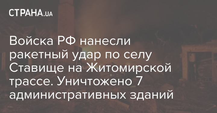 Войска РФ нанесли ракетный удар по селу Ставище на Житомирской трассе. Уничтожено 7 административных зданий