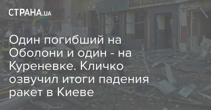 Один погибший на Оболони и один - на Куреневке. Кличко озвучил итоги падения ракет в Киеве