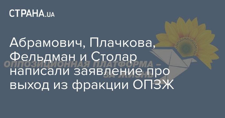 Депутаты Игорь Абрамович, Татьяна Плачкова, Александр Фельдман и известный киевский бизнесмен Вадим Столар написали заявление про их выход из депутатской фракции ОПЗЖ.