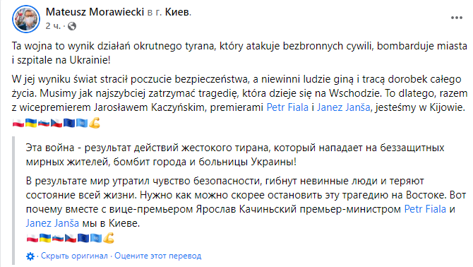 Об этом сообщил во вторник в своем Facebook глава польского правительства Матеуш Моравецкий.