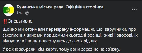 Захваченных в плен сотрудников горсовета Бучи отпустили