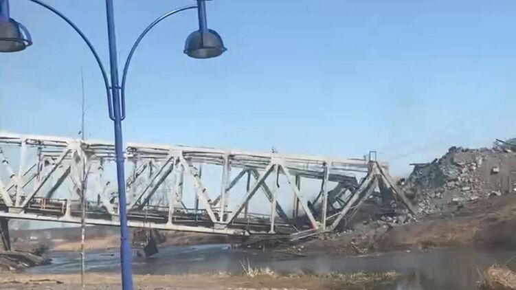 Кроме того, показывали видео взорванного под Вышгородом моста.