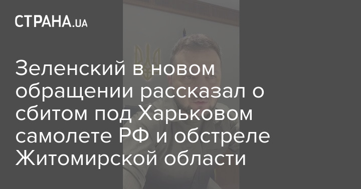 Зеленский в новом обращении рассказал о сбитом под Харьковом самолете РФ и обстреле Житомирской области